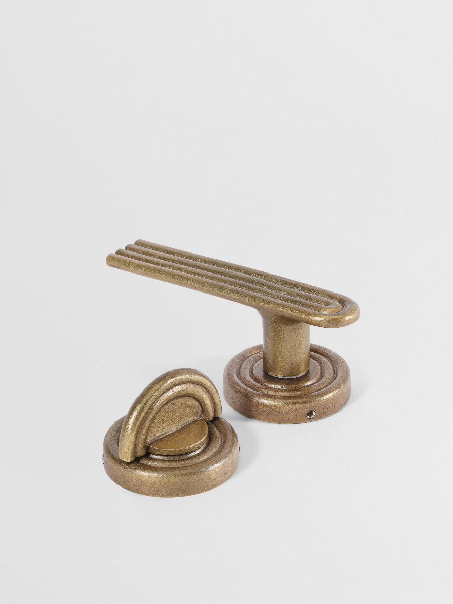 L'élégante poignée à levier Mi&Gei, coulée en laiton massif avec un bouton tournant, ajoute une touche sublime aux portes d'intimité des salles de bains, des salles d'eau, des toilettes ou des chambres. Doté d'un système de fixation dissimulé, il garantit à la fois une installation facile et une résistance durable pour l'hôtellerie et un usage intensif. Fabriqué à partir de laiton massif non laqué. Disponible dans des finitions incluant le laiton, le bronze et le nickel satiné